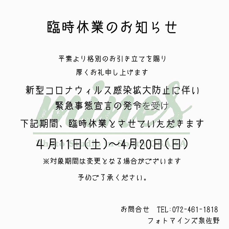いつもフォトマインズいずみさの店をご愛顧いただきまして誠にありがとうございます。